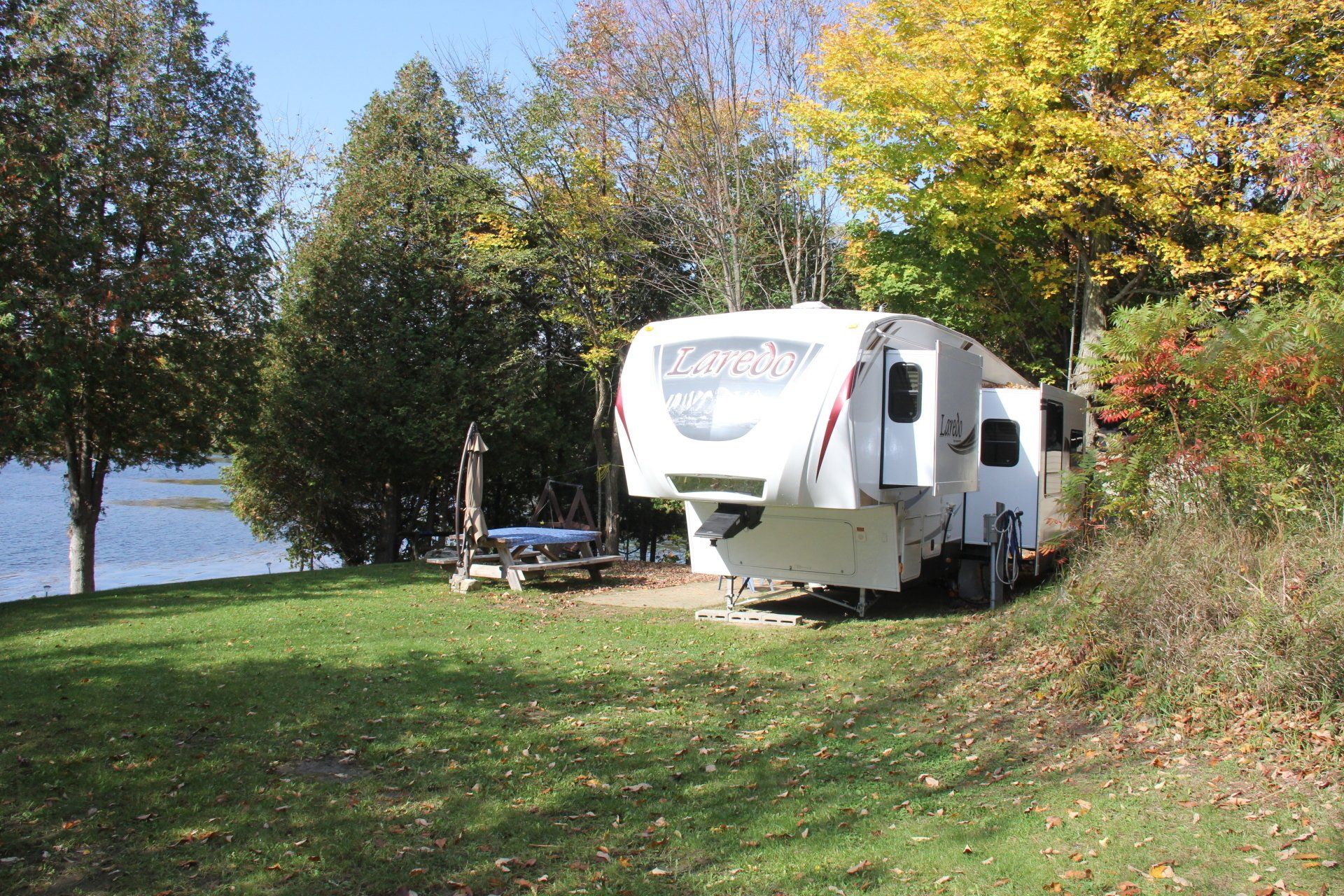 This large and secluded waterfront site comfortably sleeps 4 with 30-amp, water, and sewer service. This spacious 28' camper includes private water access. We do not provide bedding at this time.